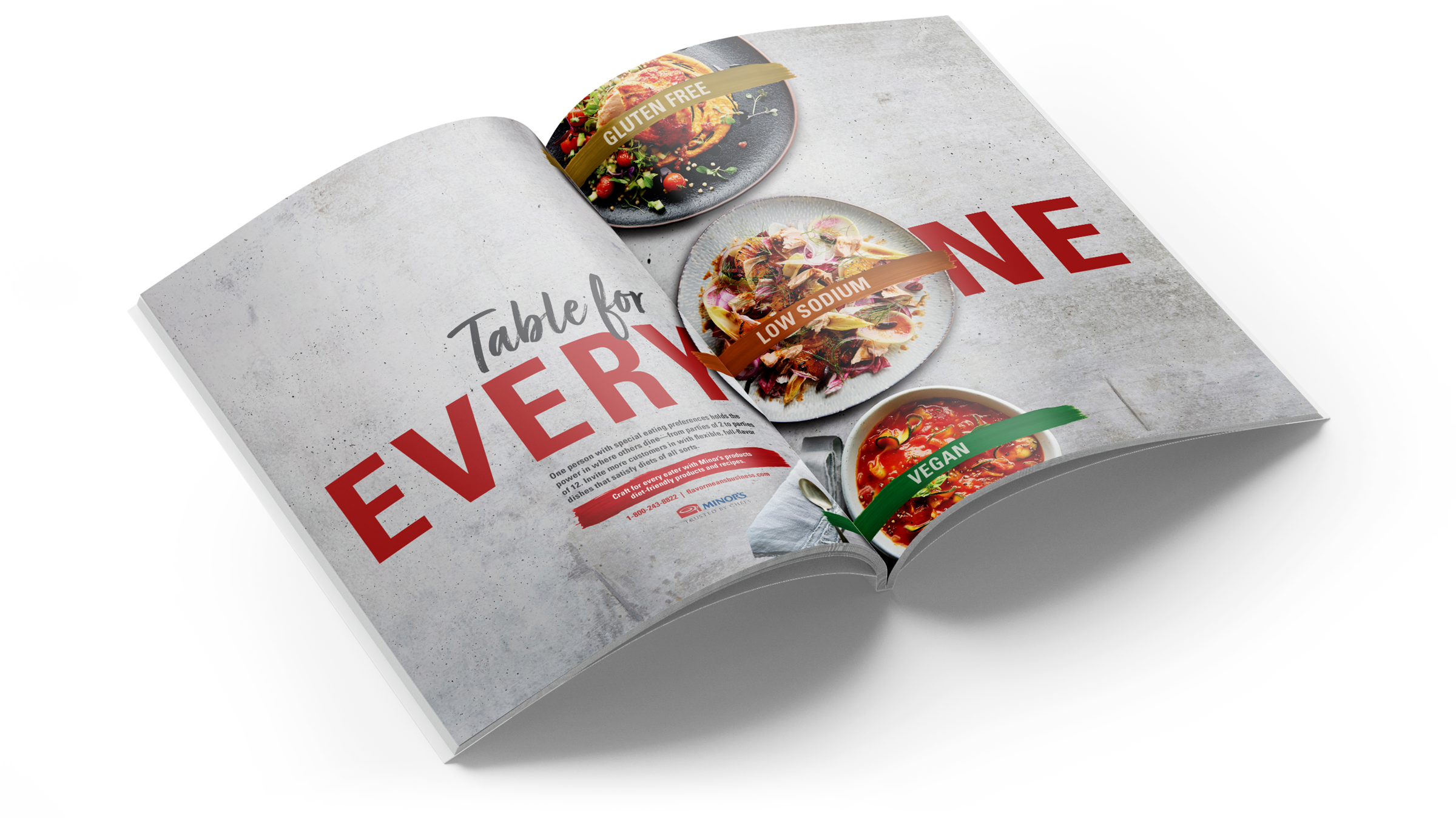 Minor’s provides pre-made sauces, bases, and concentrates to restaurants to reduce time and waste. Table for Everyone was a concept to show how versatile Minor’s products are and that they can be utilized is all types of restrictive diets.
